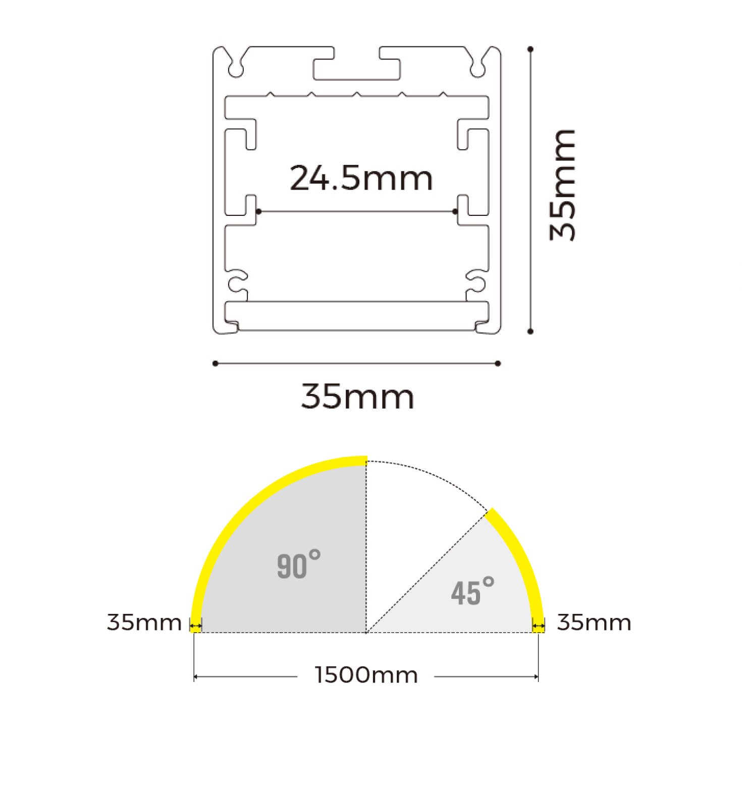 Diffuser Nature: No diffuser, Carrier Style: No carrier, Color: Black, End Cap Style: No end cap, Length: φ1.5M-90°-lighting downward, Package: COLOR S Whole, Label Type: Customized Label